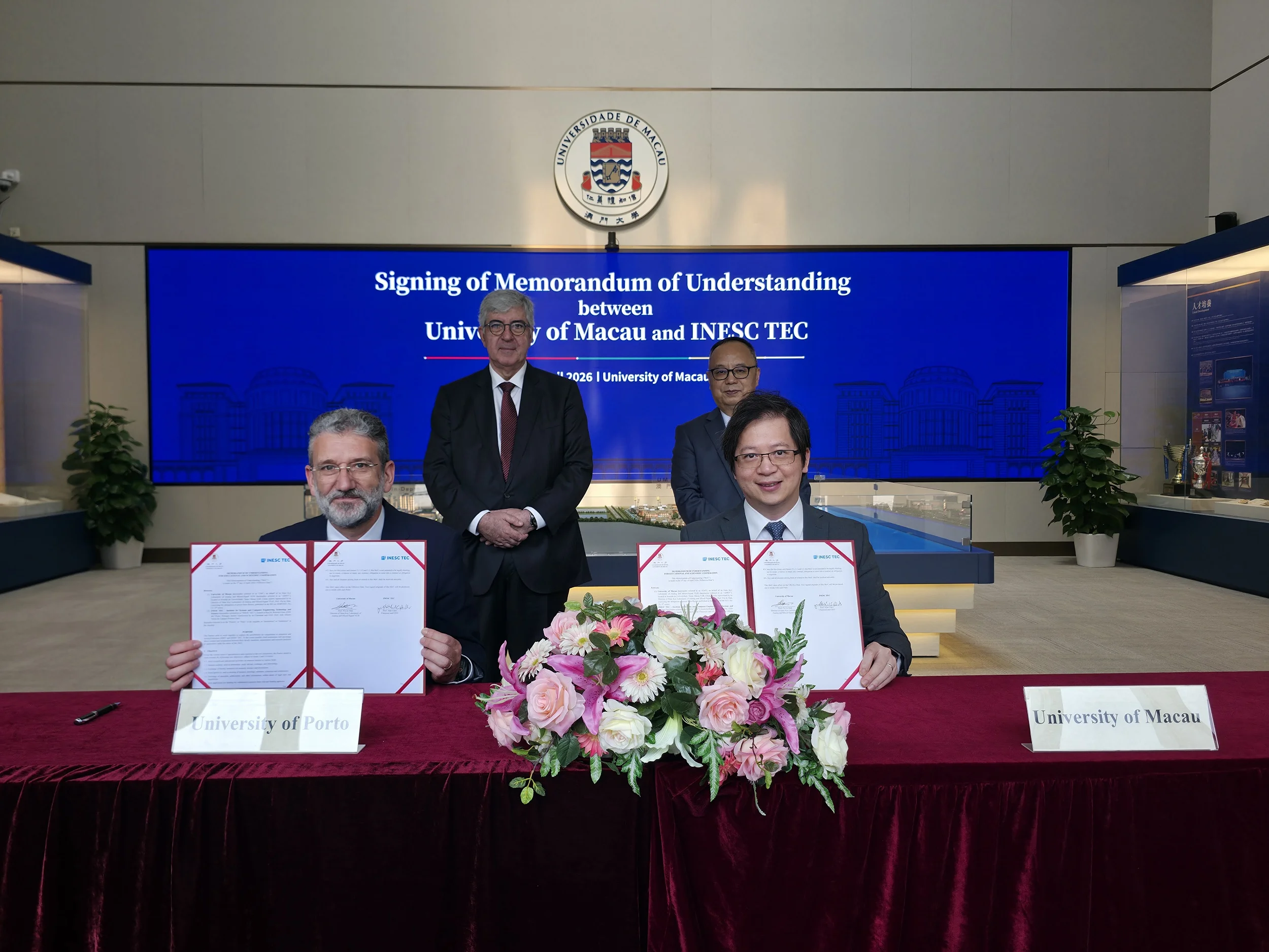 During the signing ceremony, Song and António de Sousa Pereira signed a university-level agreement on the joint supervision of doctoral students. Under this agreement, both universities will collaborate on co-supervising doctoral students in key disciplines. Then, in the presence of the two rectors, the State Key Laboratory of Analog and Mixed-Signal VLSI at UM signed memoranda of understanding (MOUs) with the Faculty of Engineering at the University of Porto and INESC TEC. The aim of these MOUs is to leverage the respective strengths of each institution to establish a high-level international platform for research collaboration.