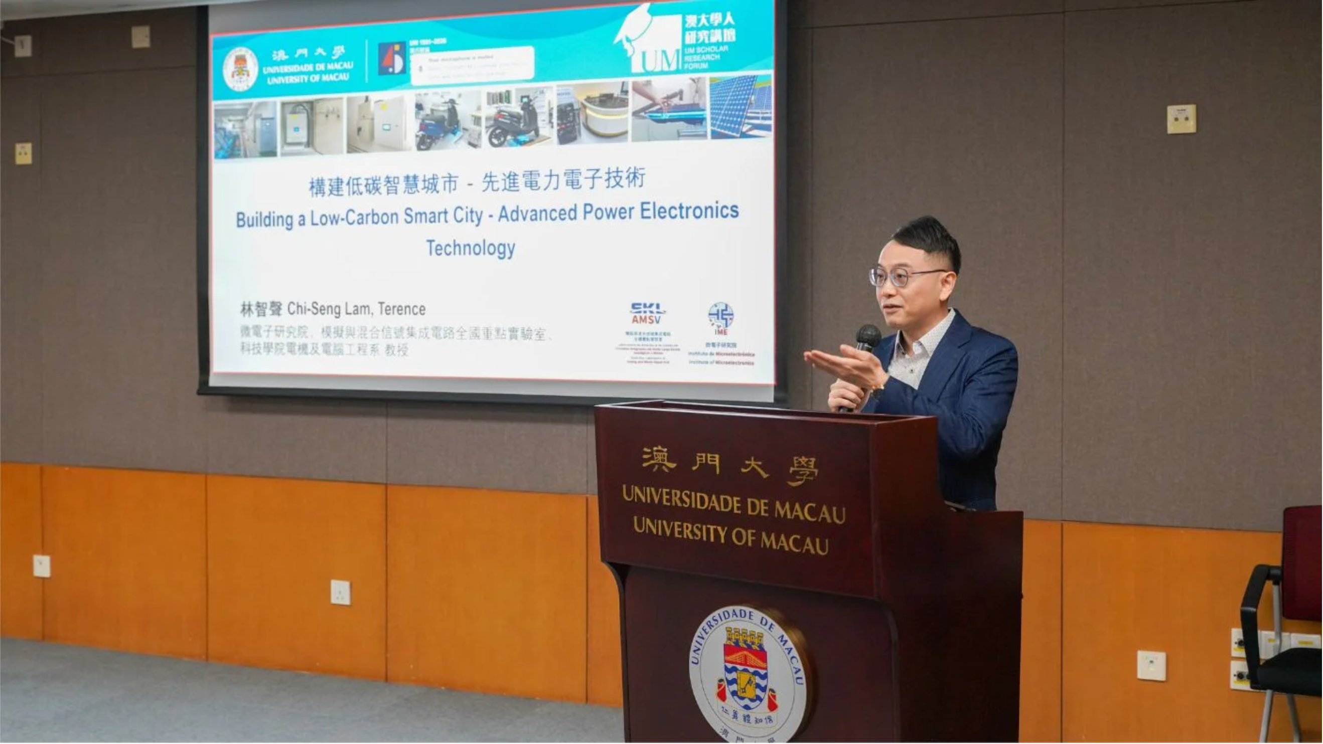 澳门大学今(21)日举行“澳大学人研究讲坛”第33讲,由澳大微电子研究院、模拟与混合信号集成电路全国重点实验室及科技学院电机及电脑工程系教授林智声以“构建低碳智慧城市——先进电力电子技术”为题发表演说。讲座吸引一众师生及公众参与,讨论气氛热烈。