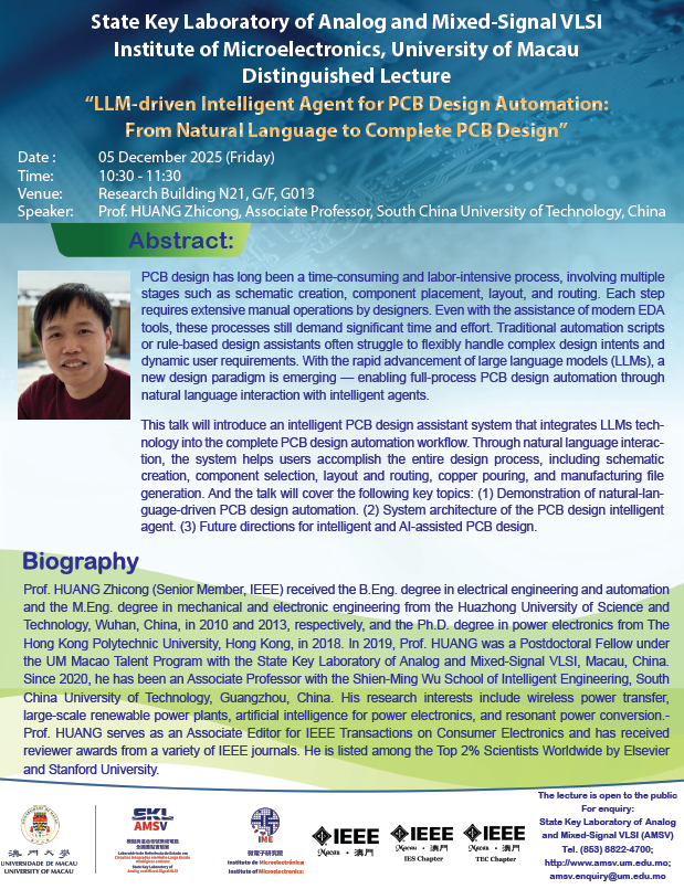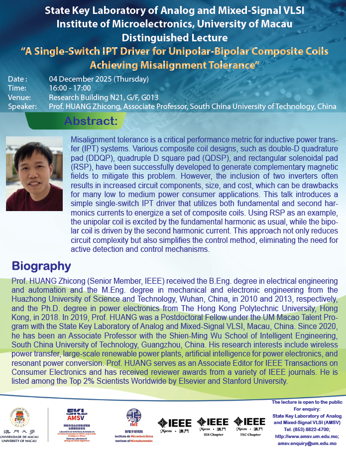 在澳門大學模擬與混合信號集成電路全國重點實驗室、國際電氣和電子工程師協會(IEEE)電路與系統學會澳門分會、IEEE固態電路學會澳門分會、中國科學技術學會、澳門 ...