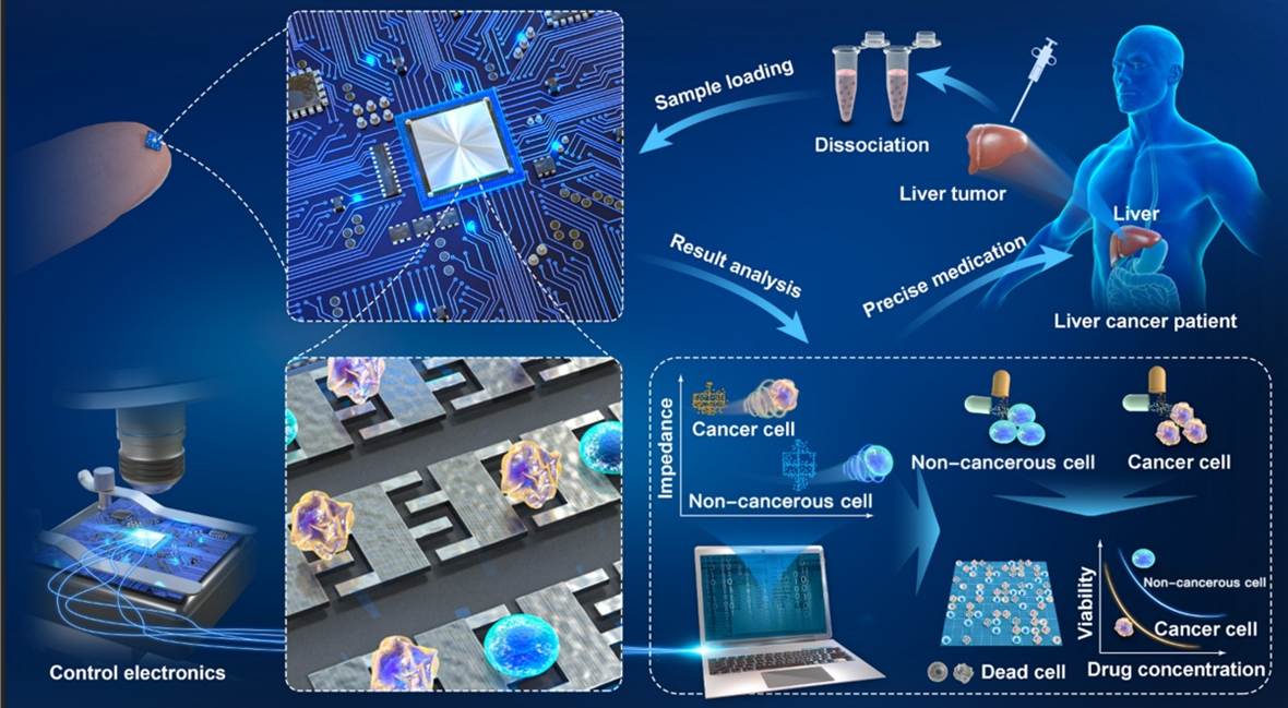 因此,澳大此項研究透過開發一個整合單細胞辨識和藥物篩選於同一半導體芯片上的系統,該系統可以同時獲得藥物對癌細胞的療效和對非癌細胞的毒性。在這個半導體芯片上建構了一個積體電路,用於單細胞電阻抗感測,該電路能夠對極弱訊號進行單細胞電阻抗感測,從而在不影響細胞活力的情況下區分癌細胞和非癌細胞。已使用乳腺癌、肺癌和肝細胞係以及臨床患者的肝癌樣本驗證了單細胞識別,腫瘤組織的診斷結果與臨床病理結果一致。單細胞識別後,在同一芯片上進行藥物篩選,以在乳癌模型和臨床肝癌患者中雙重評估藥物的療效和毒性。芯片上的藥物篩選結果已透過乳腺細胞系的芯片外對應實驗得到驗證。在IC-ECIS芯片上篩選出的藥物的有效性或無效性,與透過個別肝腫瘤外顯子定序確定的藥物相關基因中特定突變的存在與否相符,從而驗證了該方法在精準醫療中的應用。
